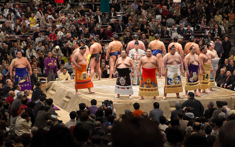 Ogni anno si tengono sei tornei, tre a Tokyo [gennaio, maggio e settembre], uno a Osaka [marzo], uno a Nagoya [luglio] e uno a Fukuoka [novembre]. Ogni torneo dura 15 giorni durante i quali ogni lottatore si esibisce in un incontro al giorno3.