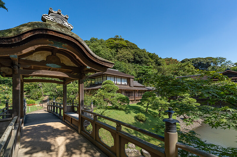 Passeggiando per i sentieri, si scoprono autentici tesori architettonici salvati dall’oblio. Tra questi spicca il Rinshunkaku (臨春閣), una splendida villa costruita nel 1649 per il clan Tokugawa. Trasferita qui nel 1917 e affacciata sullo stagno, offre una vista armoniosa sull’acqua e sui giardini, catturando l’eleganza raffinata del paesaggio aristocratico dell’epoca Edo.