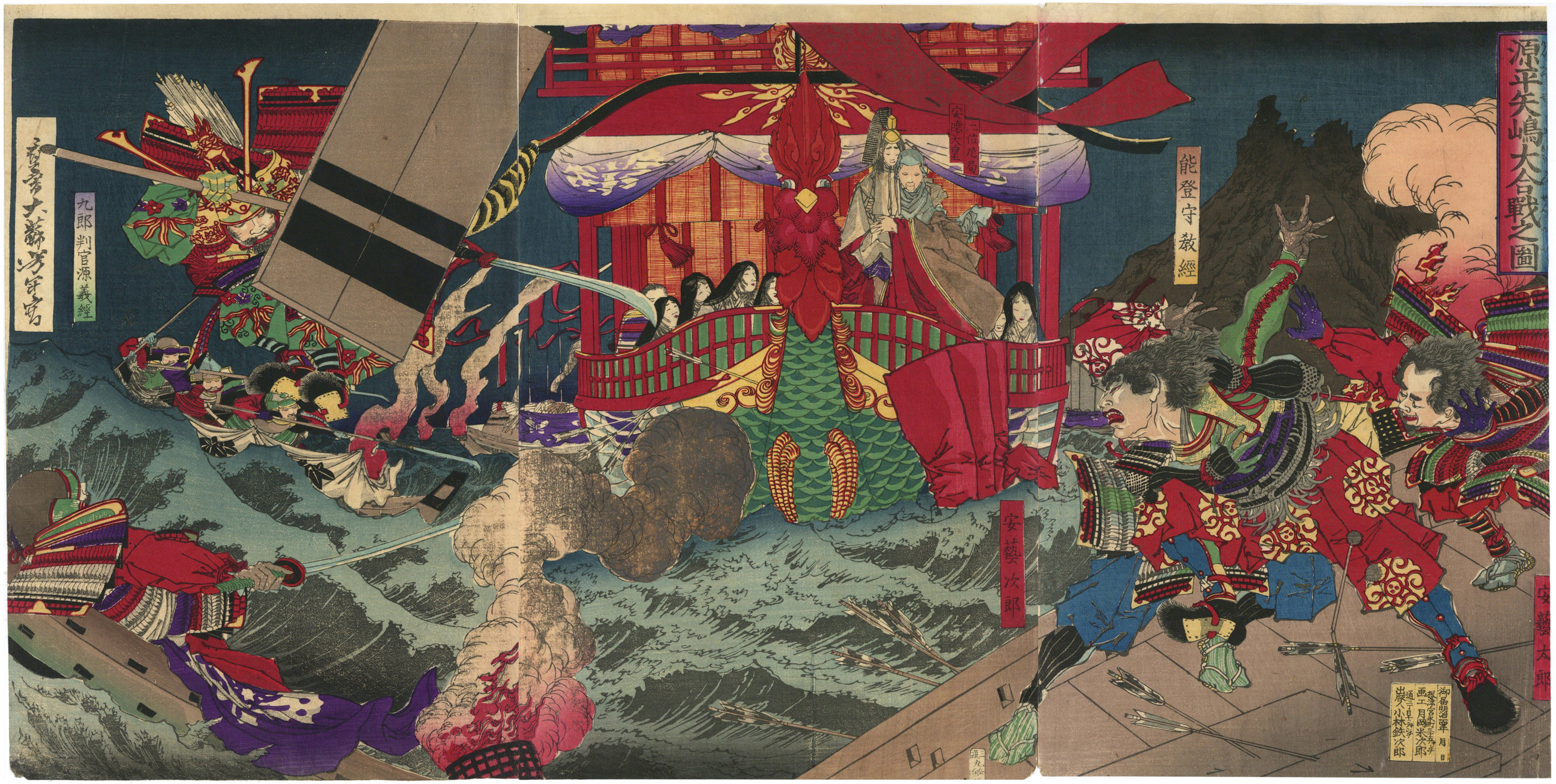 L’opera raffigura il Salto delle Otto Navi di Yoshitsune uno dei momenti più drammatici ed eroici della storia giapponese.