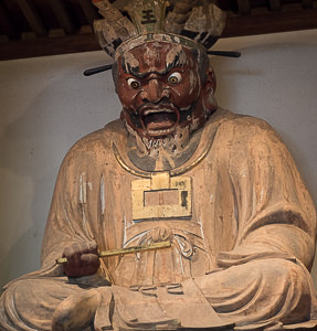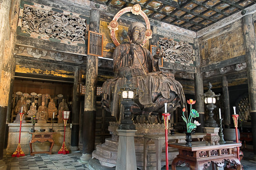 Alta più di 9 metri, questa statua in legno dorato è considerata come una delle più grandi sculture lignee del Giappone e (così si narra) è stata scolpita dallo stesso albero della statua Kannon venerata nel tempio Hasedera nella prefettura di Nara.