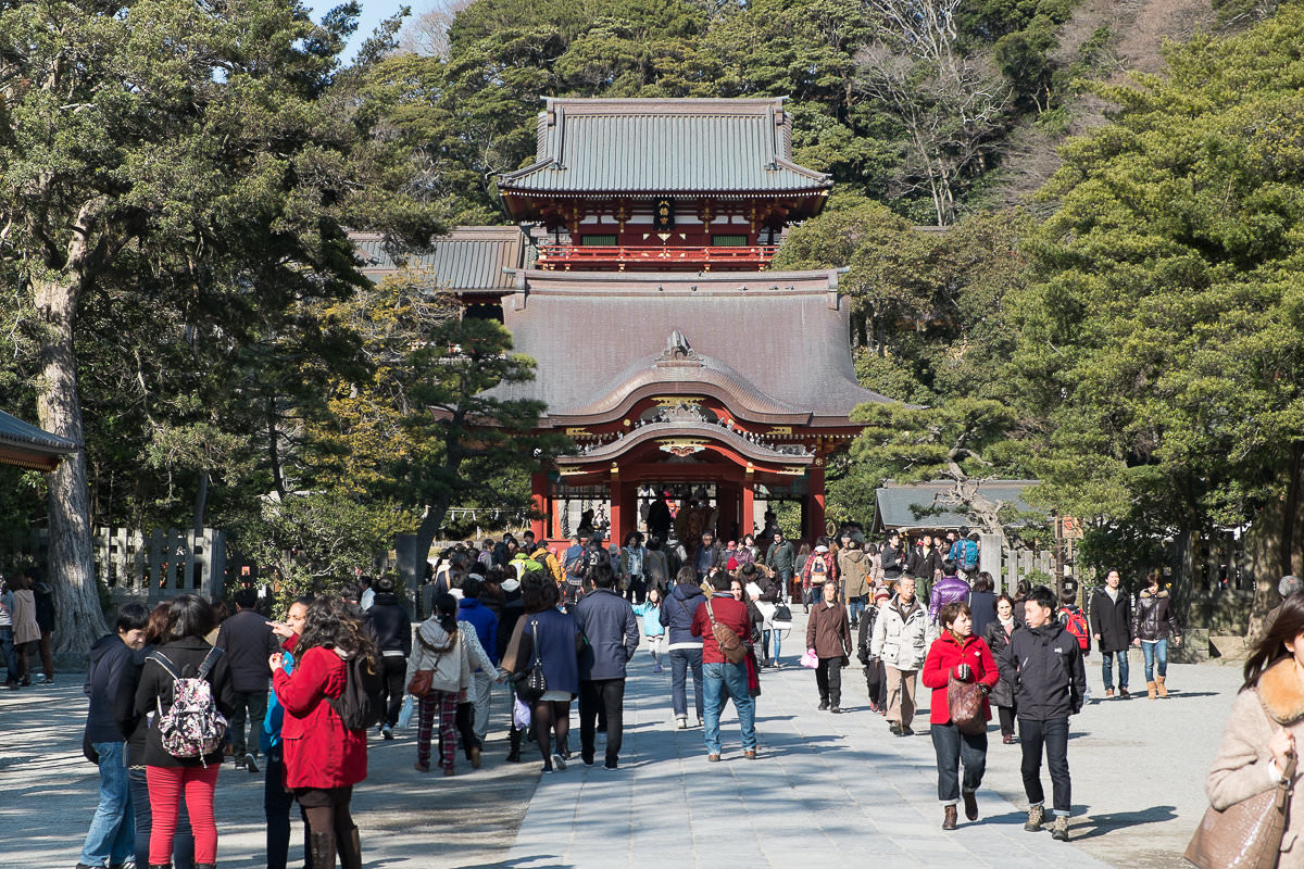 Usciti dalla stazione di Kamakura direi di recarci subito a visitare il santuario Tsurugaoka Hachiman-gū5 dedicato al kami della guerra (Hachiman), fatto erigere dallo stesso Minamoto Yoritomo6. Il complesso è molto vasto e per raggiungerlo seguiamo il viale centrale che parte dal mare.