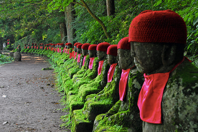 Ora possiamo fare una pausa e mangiare qualche cosa prima di andare a camminare lungo l’abisso di Kanman-ga-Fuchi. Il sentiero è costeggiato da una serie di statue di pietra17 e si dice che contando le statue prima all’andata e poi al ritorno, non si ottenga mai lo stesso numero ed è perciò che vengono chiamate «Bake Jizō» o «Jizō fantasma».