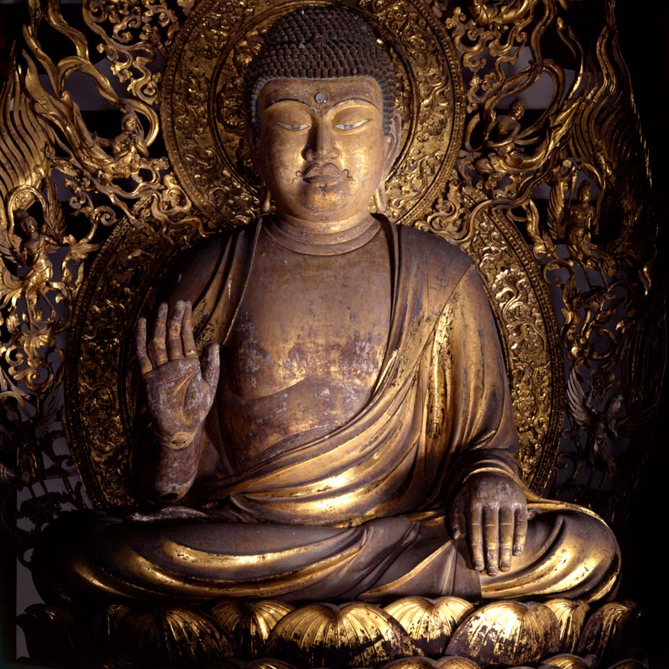 All’interno della sala principale un dorato Rushanabutsu Budda siede su un gigantesco fiore di loto sostenuto da centinaia di piccole statue in una miriade di forme, tutte impegnate a salvare tutti gli esseri senzienti.